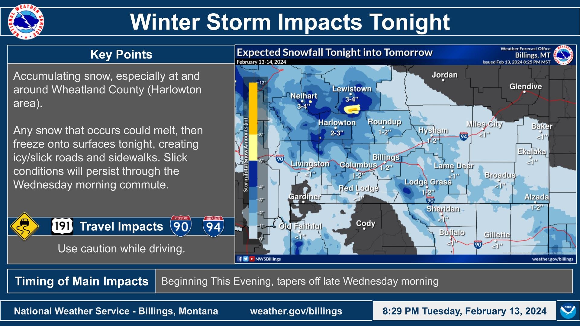 NWS Billings on X: “Evening #snowfall forecast update for tonight
