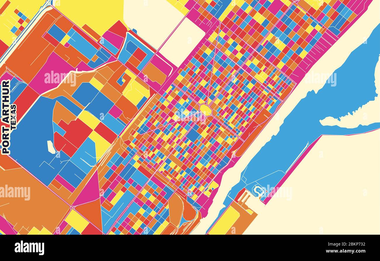 Colorful vector map of Port Arthur, Texas, USA. Art Map template